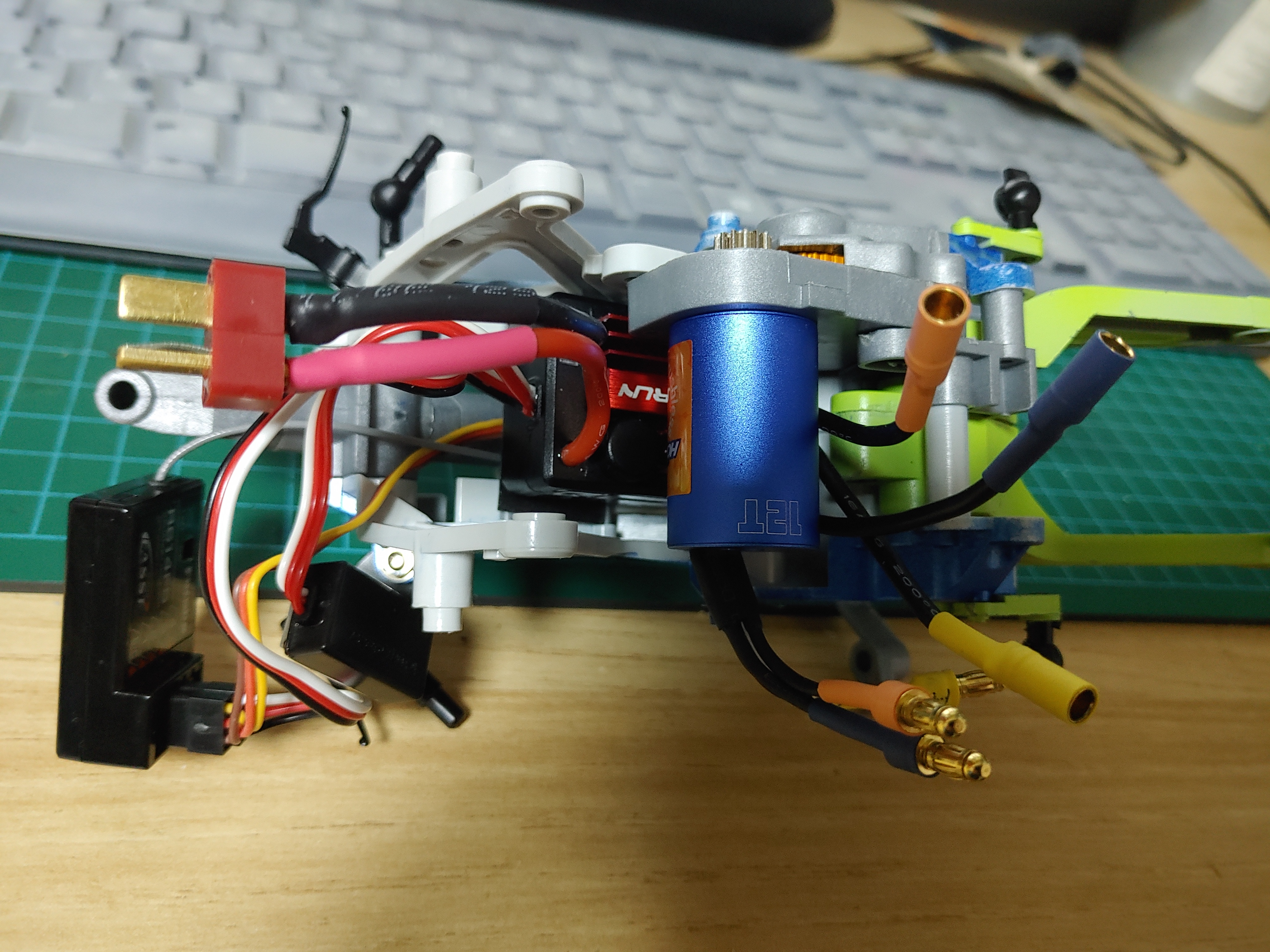브러쉬리스로 변경하면서 가장 고민되는 부분이 바로 배터리입니다. 순정일때는 18650 리튬이온 3000mah 배터리로 한참을 즐길 수 있었는데 브러쉬리스로 변경하면서 적합한 리튬폴리머 배터리를 찾는 게 쉽지 않습니다. 아무래도 HOR에 일반적인 PRO TECH 1600mah 수소배터리를 사용해야 하지 않을까 싶습니다. 일단 집에 있는 리튬폴리머 배터리를 사용해 장착하고 배터리 케이블 연장작업을 해 주었습니다.