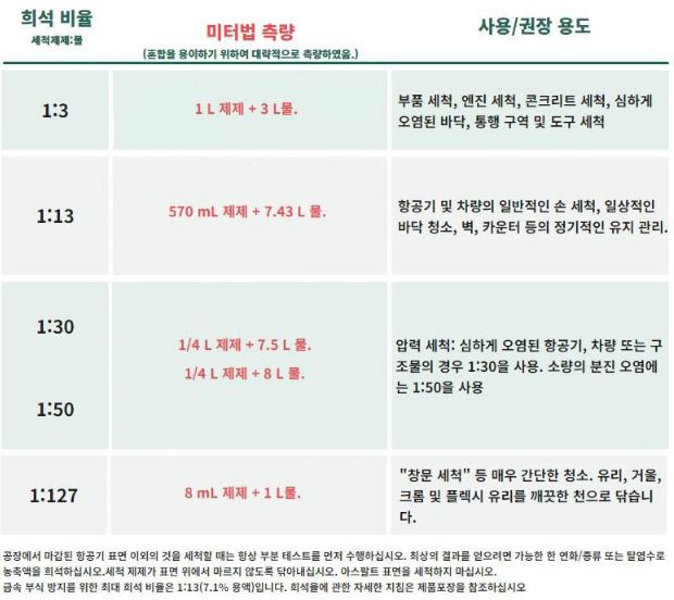 원액을 그대로 사용하는 것은 아니고 물과 희석해서 사용하기 때문에 오래 사용할 수 있을 듯 보여집니다. 대략 1:13정도 비율로 희석해서 청소하면 되지 않을까 생각이 드네요. 효과는 직접 사용해 보고 다시 추가하도록 하겠습니다.