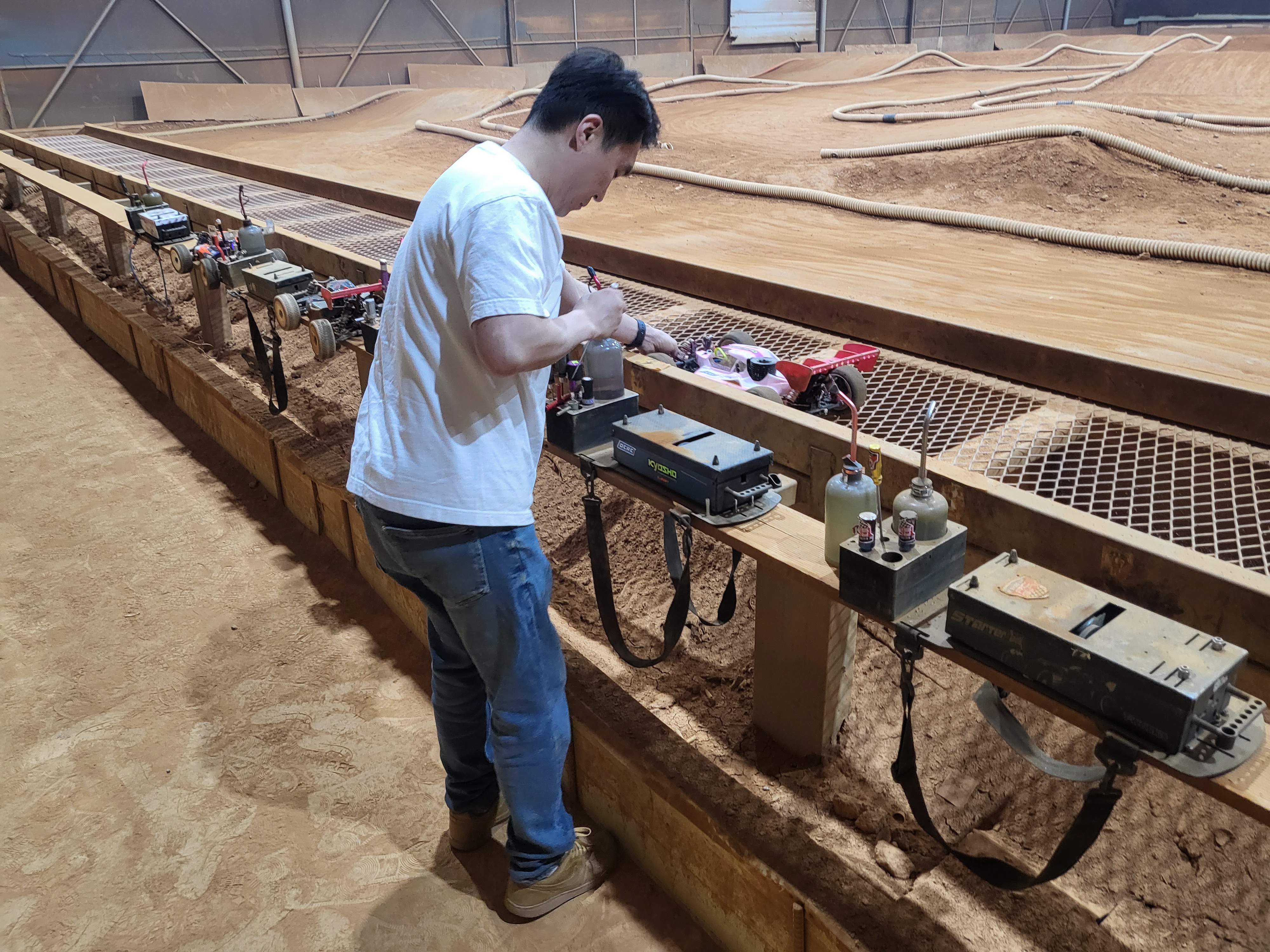 그리곤 최후 진단으로 OS 엔진 교체를 권했습니다. 기록 단축을 위해서는 가장 짧은 라인으로만 주행을 해야 하는데 현재 제가 사용하는 저가 엔진으로는 한계가 있기 때문입니다. 그래서 아끼던 OS 엔진으로 교체하고 최병훈 선수가 링케이지를 손 본 후 테스트 주행을 했습니다.